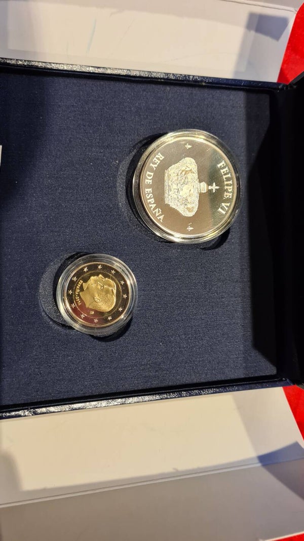 PROOF set Spanje 2014 Don Felipe VI met 2 euro Spanje 2014 Dubbelportret PROOF en een zilveren penning van sterling zilver 925/1000 (27 gram)