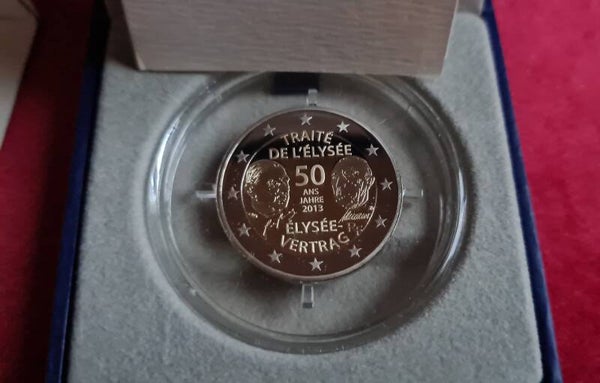 Thema: 50 jaar Élysée verdrag. Zelfde thema als de eerste Duitse 2 € CC munt dit jaar. Deze afbeelding is afkomstig van Ad€