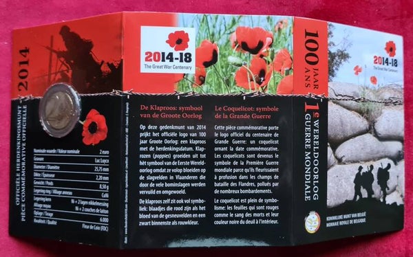 2 euro Belgie 2014 Einde eerste wereldoorlog BU coincard
