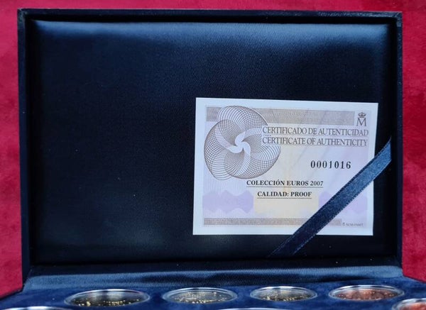 1 cent - 2 euro Spanje 2007 inclusief 2 euro Spanje 2007 Verdrag van Rome PROOF