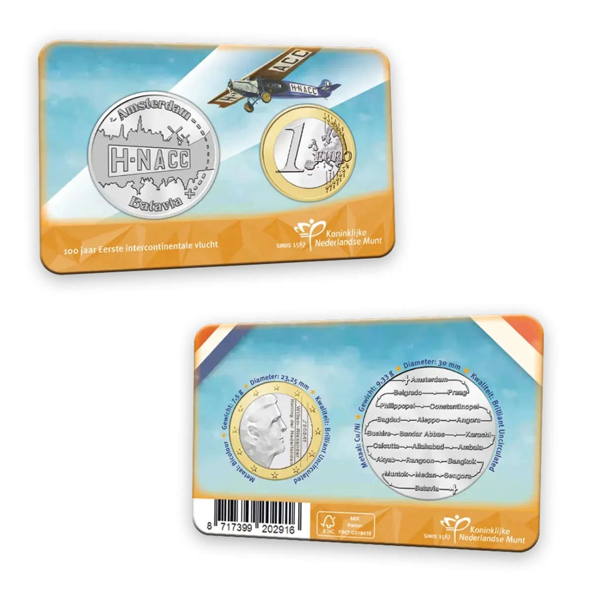 - Zeer zeldzaam: een coincard met penning én €1 munt