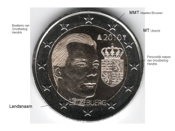 Het thema van deze gedenkmunt is het wapen van Luxemburg. De oplage is 529.500. Er is ook een coincard. Emissiedatum: 14-01-2010. De munt is in Utrecht geslagen. Wegens de ten opzichte van vorige jaren ongeveer gehalveerde oplage is de prijs flink gestegen.