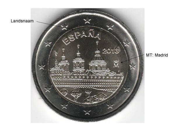 Thema: Vierde munt uit de Werelderfgoed serie: Escorial te Madrid.Emissiedatum: Voor het eerst te verkrijgen in de WMF set op 1 februari 2013. Oplage: 4.035.800