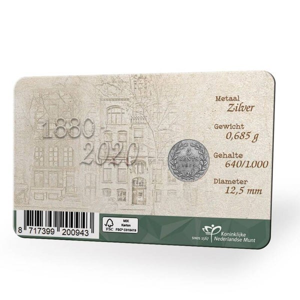 140 jaar Schulman 2020 in coincard met zilveren 5 guldencent Koning Willem III 1862